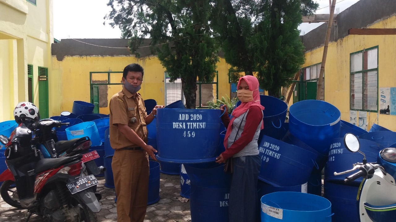450 bak sampah tersebut diterima Bagian Keuangan Pengurus Bank Sampah Desa Timusu, Kartini, selaku mewakili pengurus di Kantor Desa Timusu.
